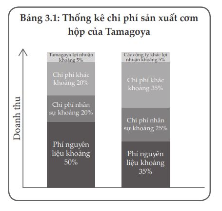 Ngoài ra, một lí do quan trọng có thể hạn chế các chi phí đó là tỉ lệ hủy bỏ cơm hộp giảm thấp. Nếu như tỉ lệ này trong giới doanh nghiệp trung bình khoảng 2%, thì Tamagoya là khoảng 0,1%, thấp một cách đáng ngạc nhiên. Đây chính là con số có được nhờ thực đơn một sản phẩm.