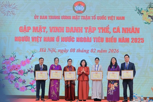 Sáng 8/2, tại Hà Nội, Ủy ban Trung ương MTTQ Việt Nam tổ chức gặp mặt, vinh danh tập thể, cá nhân người Việt Nam ở nước ngoài tiêu biểu năm 2025.