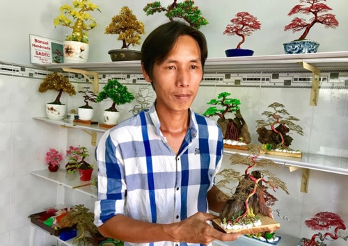 Từ niềm đam mê và gắn bó với nghề làm đẹp cho cây kiểng, anh Trịnh Trần Ngọc Anh ở phường 1, TP Sa Đéc, Đồng Tháp đã sáng tạo ra bonsai thu nhỏ làm từ dây kim loại..