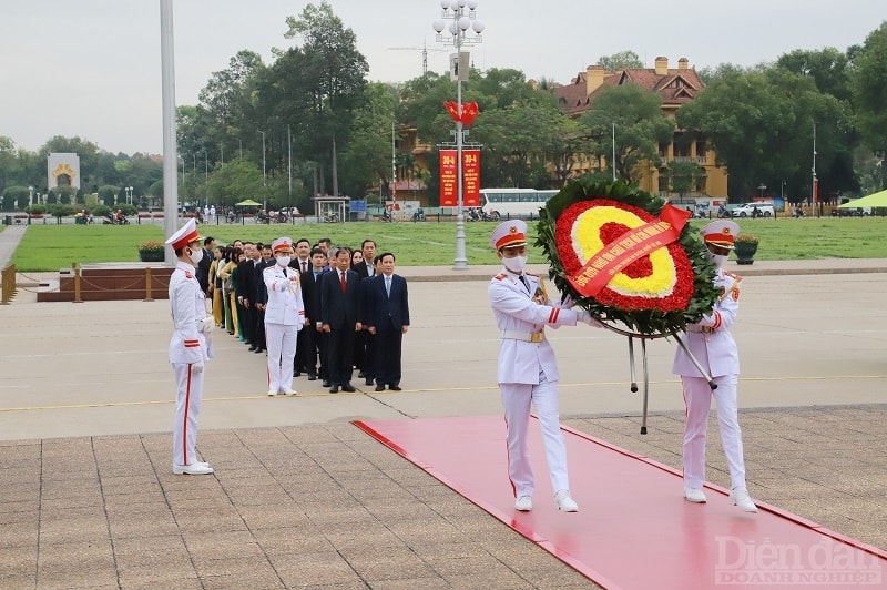 Các đại biểu tham dự vào lăng viếng Chủ tịch Hồ Chí Minh, báo công dâng Bác
