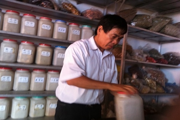 Lương y Nguyễn Văn Ngân trong phòng thuốc