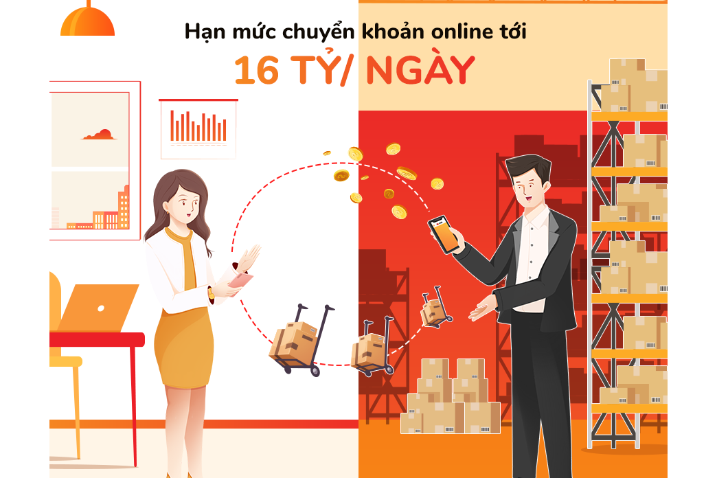 Mỗi khi cần đặt cọc hay thanh toán cho một đơn hàng lớn và không lo bỏ lỡ thời cơ trong kinh doanh, M-Business sẽ mang đến cho bạn hạn mức chuyển khoản online lên tới 16 tỷ đồng/ngày. Với gói tài khoản này, bạn cũng không cần phải ra quầy giao dịch và chờ đợi làm thủ tục chuyển khoản mỗi khi cơ hội kinh doanh đến.