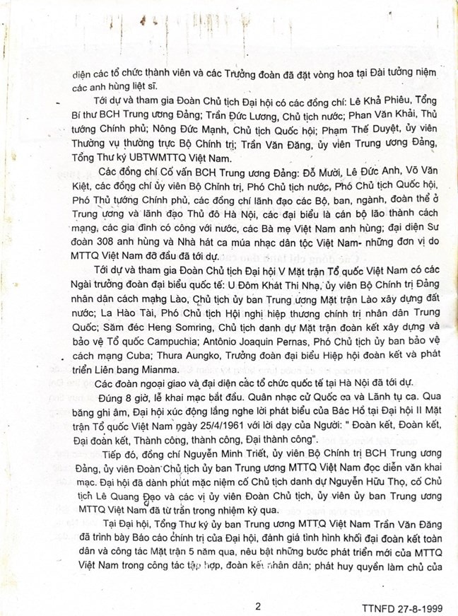 * Bài viết của Thông tấn xã Việt Nam (số 240-TTX), ngày 28/8/1999 về Phiên Bế mạc Đại hội đại biểu toàn quốc Mặt trận Tổ quốc Việt Nam lần thứ V