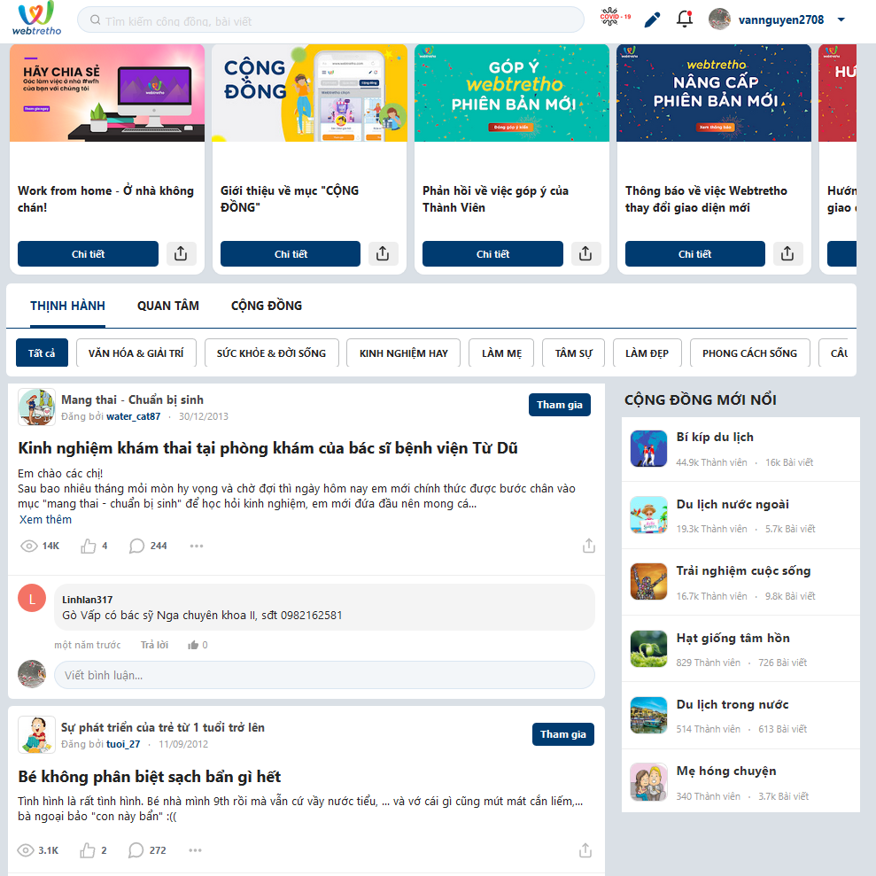Một điển hình cho sự phát triển và chuyển mình ấy chính là diễn đàn https://www.webtretho.com/. Từ định hướng ban đầu là nơi để các mẹ bỉm sữa cùng chia sẻ thông tin, thảo luận về các vấn đề liên quan đến mẹ bầu, trẻ nhỏ và là nơi để các thành viên tham gia diễn đàn chia sẻ lại những sản phẩm dành riêng cho mẹ và bé.